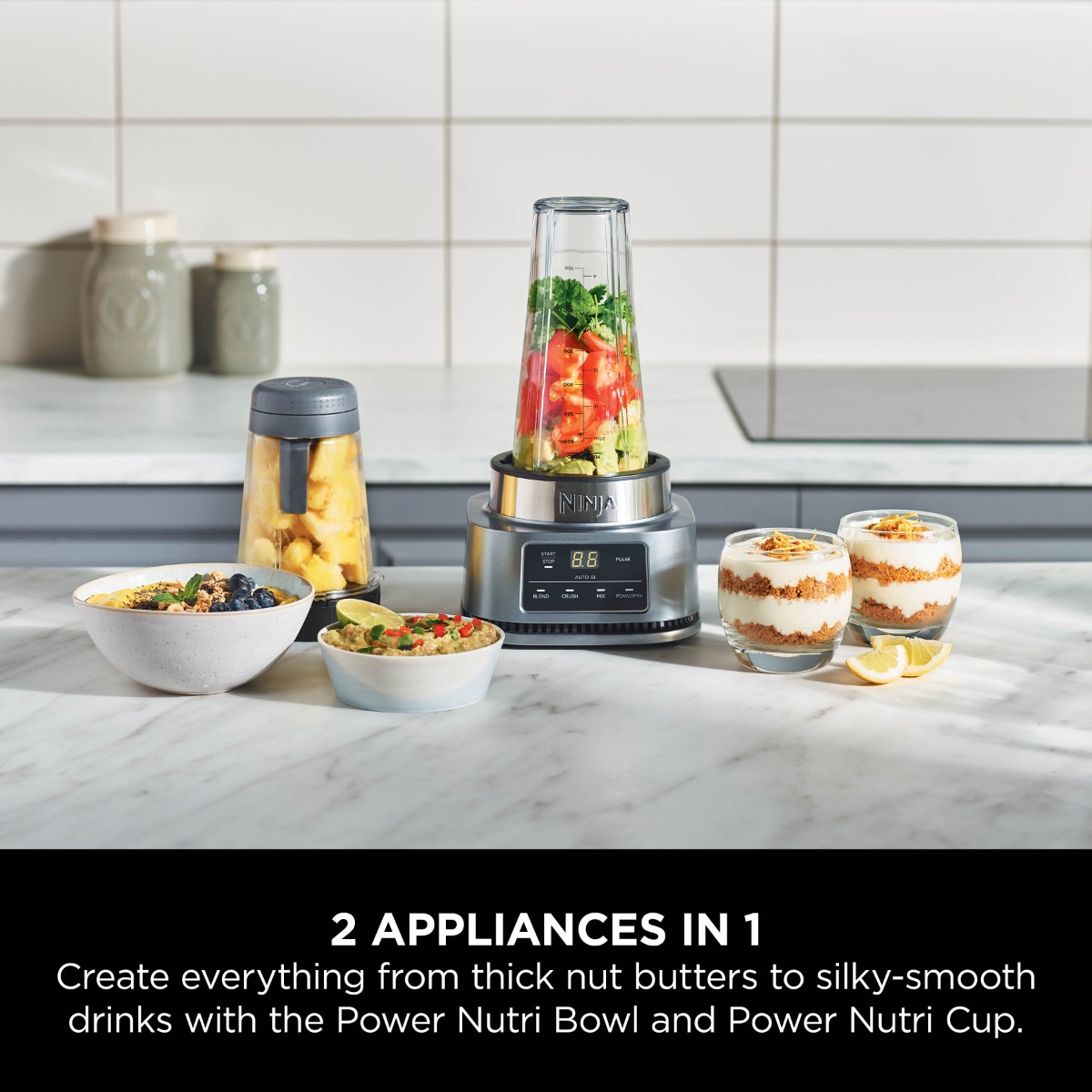 2-in-1 design with Power Nutri Bowl & Power Nutri Cup for total texture control.